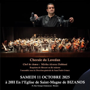 La segunda parte estará dedicada a una de las cumbres del repertorio sinfónico-coral: el Réquiem en re menor, K. 626, de Wolfgang Amadeus Mozart, interpretado junto a la Chorale du Lavedan y los solistas Souad Natech (soprano), Anaïs Godin (soprano), Myriam Labri (mezzo, Clément Lanfranchi (tenor) y Eric De Marteau (barítono-bajo) que sumarán sus voces a la orquesta y el coro, creando un diálogo musical intenso y lleno de sensibilidad. Esta obra maestra, cargada de dramatismo, espiritualidad y belleza musical, permitirá a todos los intérpretes unir fuerzas para ofrecer al público francés una experiencia inolvidable.